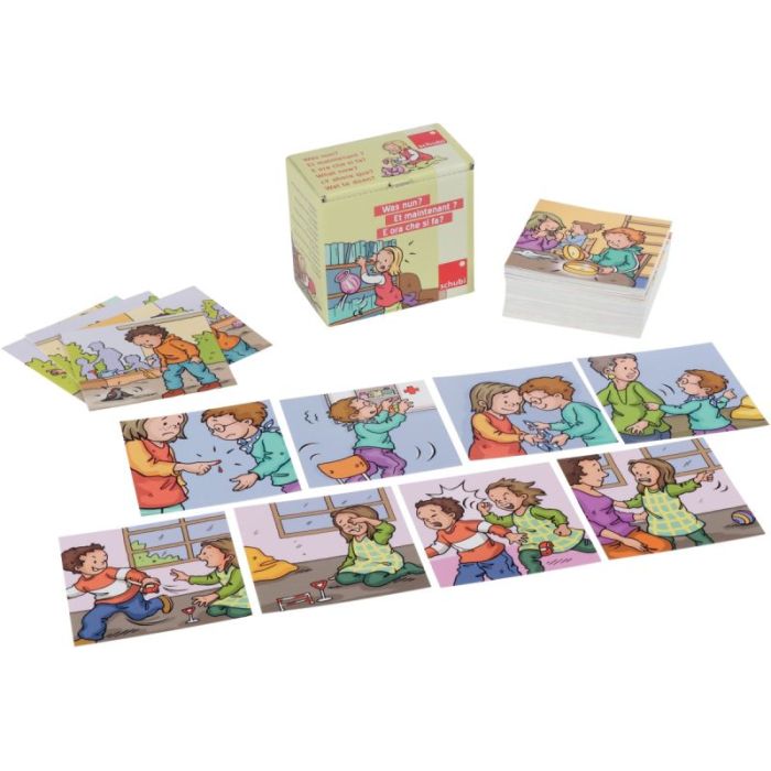 Contenu : 72 cartes illustrées 9x9cm dont 18 situations de 4 images, 1 notice