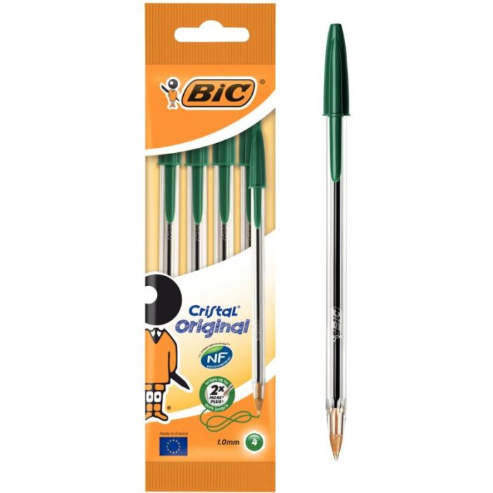 Blister de 4 stylos bille Cristal pointe moyenne verts