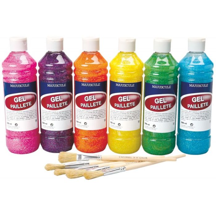 Carton de 6 Flacons de 500ml de gel pailleté coloris arc en ciel