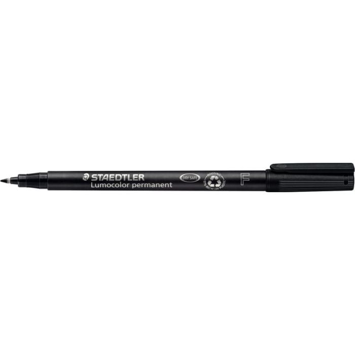 Pour la rétroprojection et la plupart des surfaces, encre permanente dry safe permettant de laisser décapuchonné plusieurs jours sans sécher (ISO 554), ne bave pas, quasi inodore, résistant à l'eau sur presque toutes les surfaces, séchage rapide sur le support idéal pour les gauchers, avec clip, corps et capuchon en polypropylène garantissant une longue durée de vie, rechargeable, pointe fine 0,6 mm