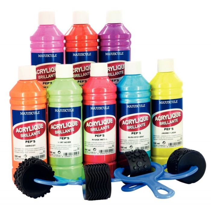 Coffret de 8 flacons 500 ml de peinture acrylique "ULTRA GLOSS", couleurs pep's