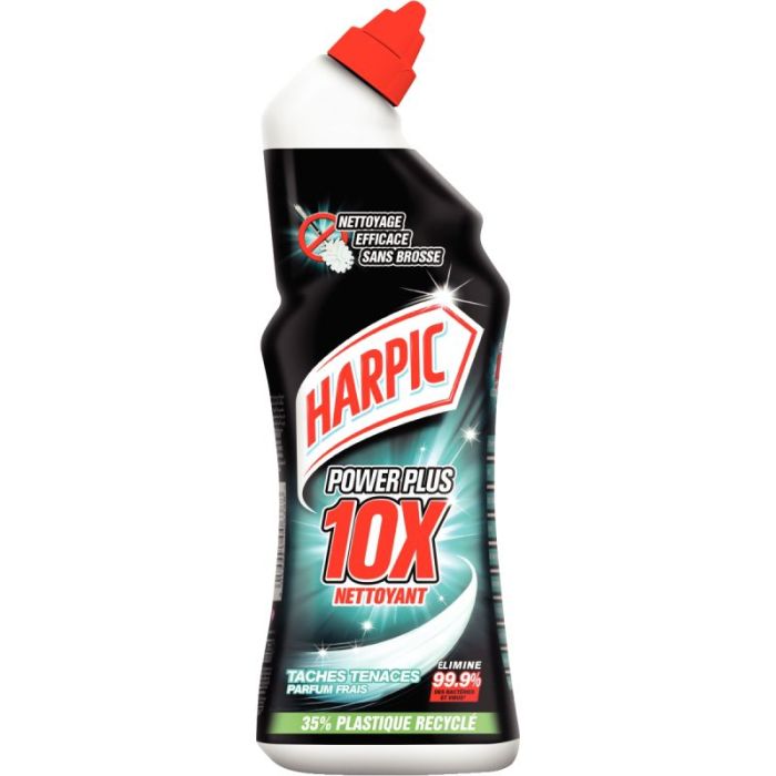 Harpic Tâches Tenaces Parfum Frais, formule combinant 10 actions puissantes pour venir à bout des bactéries, virus et taches, même celles que vous ne pouvez pas voir