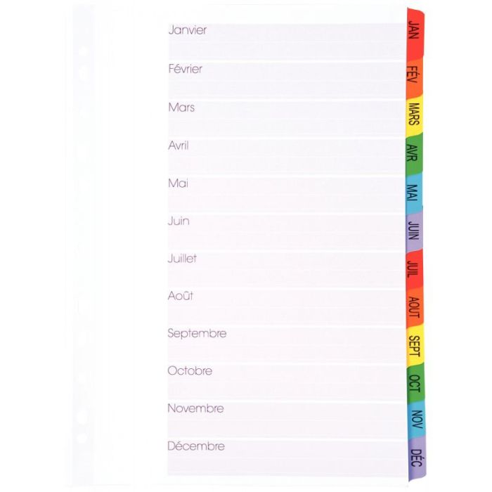 Jeu de 12 intercalaires mensuels en carte Mylar, format A4+