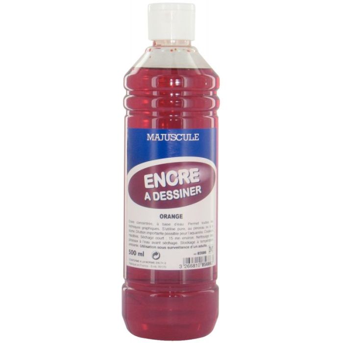 Flacon de 500 ml d’encre à dessiner MAJUSCULE coloris orange