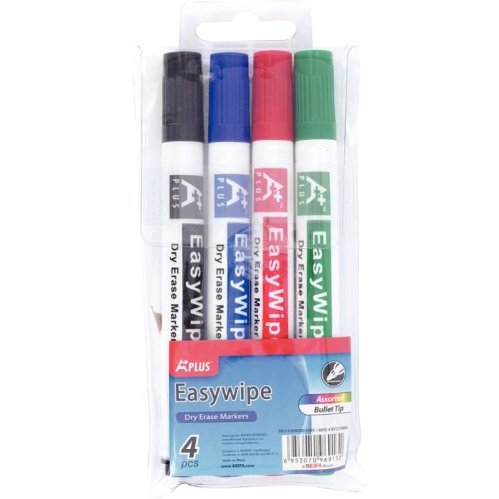 Pochette de 4 marqueurs tableaux blancs 2,5mm pointe ogive assortis