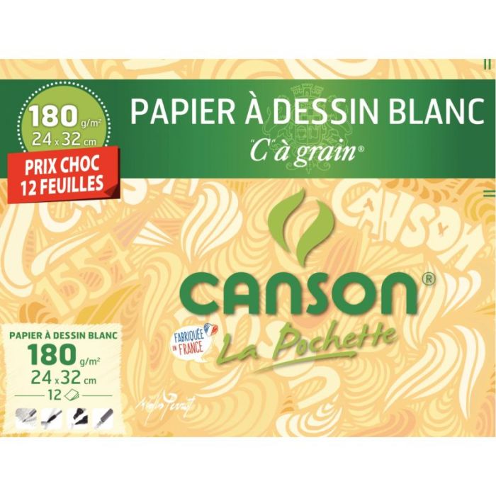 Pochette de 12 feuilles à dessin C à grain 180g 24x32cm