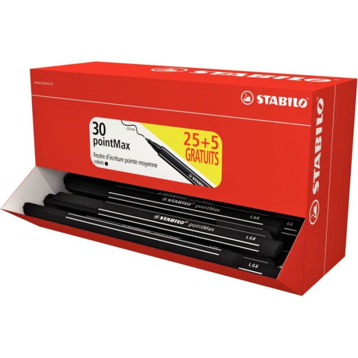 Pochette de 30 feutres Pointmax noirs dont 5 gratuits