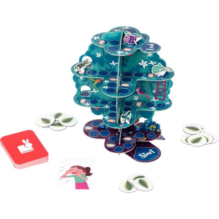 Contenu du Jeu : 1 arbre à monter en carton épais (24,5x21cm), 4 animaux en carton, 80 jetons, 40 cartes en carton, 1 dé et une règle du jeu