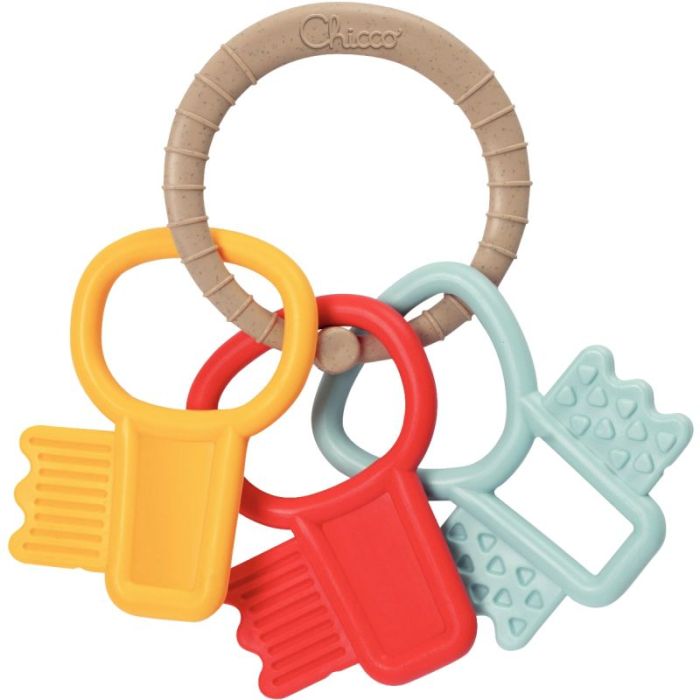 Hochet composé d'un anneau en plastique 80% recyclé et de 3 clés en plastique biosourcé à 60%