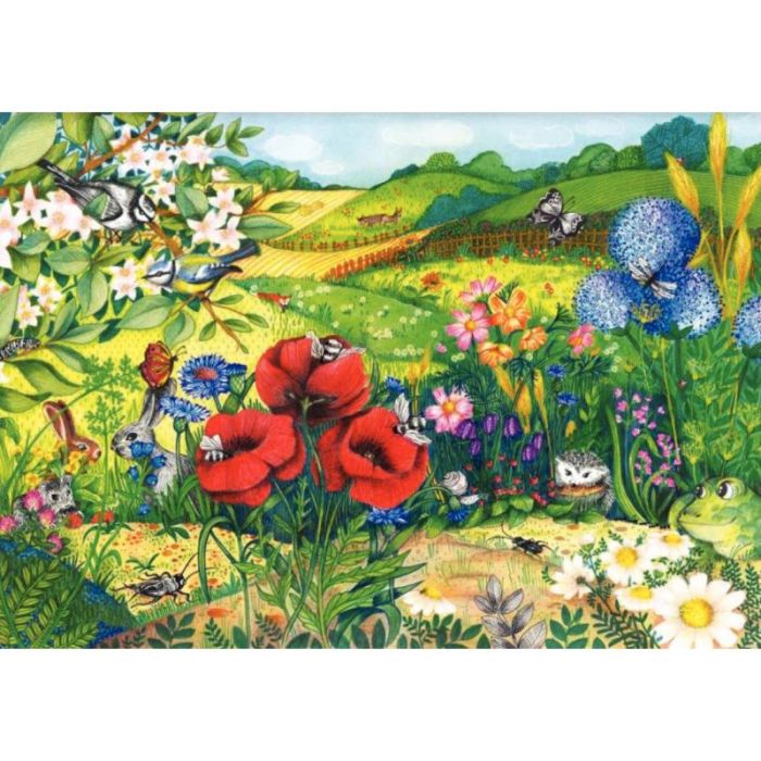 Puzzle en bois d'environ 50 pièces, prairie en fleurs