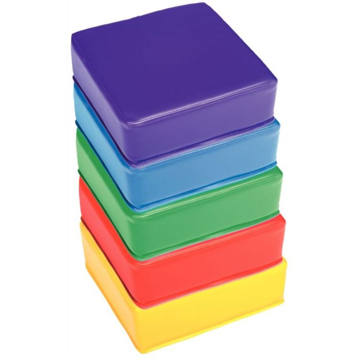 Très pratique et joli, ce set de 6 poufs rectangulaires peut s’empiler dans un coin de la classe afin d’optimiser son rangement
