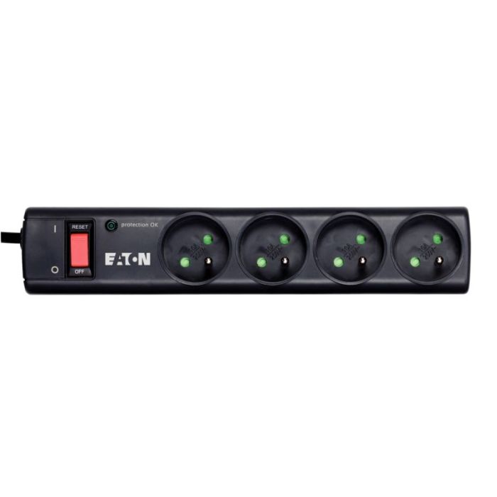 Protection-surtensions pour informatique, multimedia, téléphonie, TV/Hi-Fi/Vidéo, équipements de bureau, Technologie 3 LINE PROTECTION efficace contre tous les types de perturbations, prises avec obturateurs, témoin de protection active, bouton marche/arrêt avec disjoncteur réarmable, montage mural, garantie des matériels connectés jusqu?à 15 000 Euros