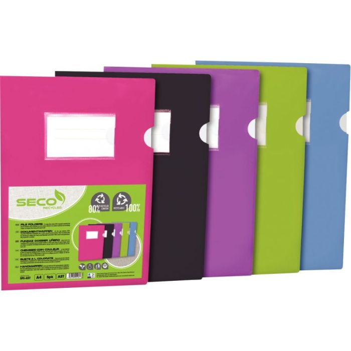 Sachet de 5 pochettes coin en polypropylène opaque recyclé, coloris assortis